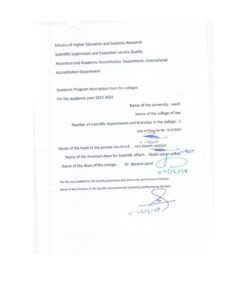 استمارة الوصف الاكاديمي لفرعي القانون العام والقانون الخاص 2023- 2024 (باللغة الانكليزية)