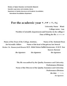 استمارة الوصف الاكاديمي لفرعي القانون العام والقانون الخاص 2023- 2024 (باللغة الانكليزية)
