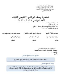 برنامج الوصف الاكاديمي الفرع العام 2021-2022