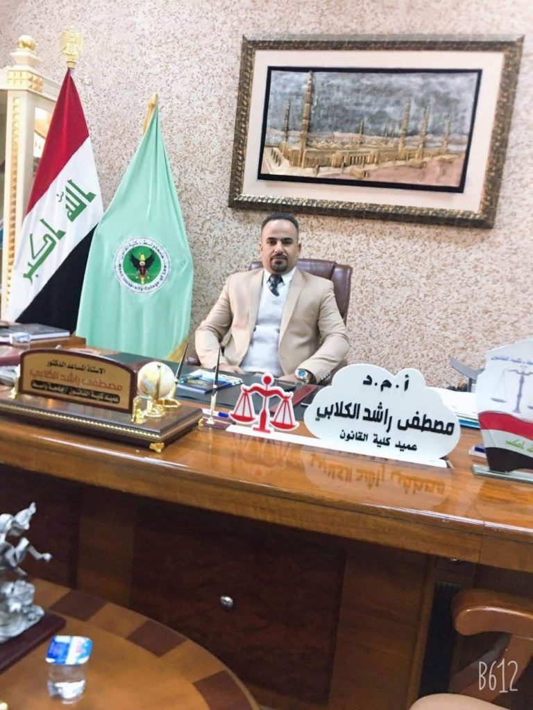 تتقدم عمادة كلية القانون و السادة التدريسيين و الموظفين و الطلبة بالتهنئة الخاصة الى ألاستاذ المساعد الدكتور ( مصطفى راشد الكلابي ) بمناسبة تسلمه منصب عميد كلية القانون متمنين له دوام الموفقية و النجاح الدائم لخدمة المسيرة العلمية والله الموفق .